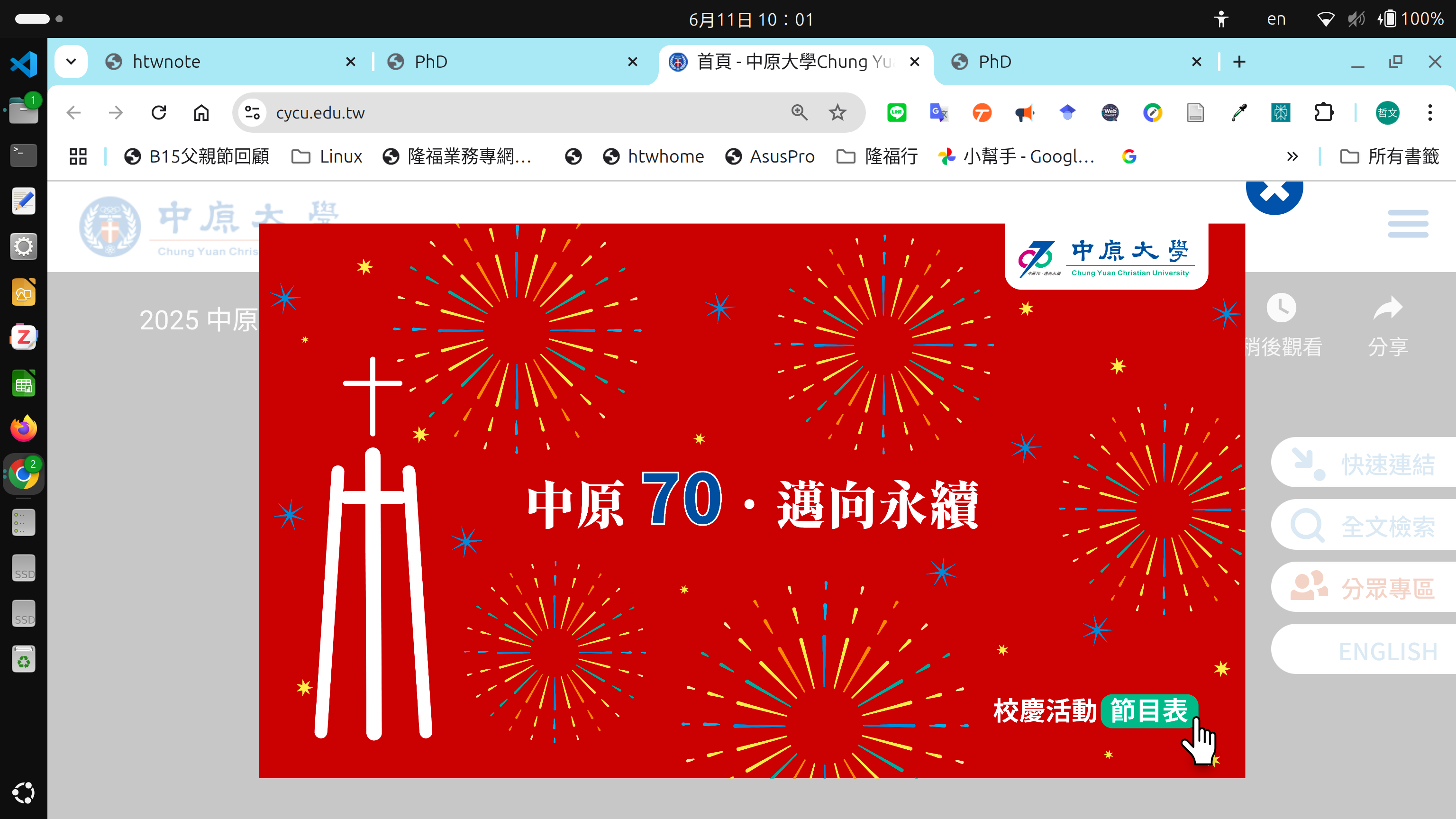 到學校打開電腦,中原大學主頁,蹦的跳出一張紅色賀卡,嚇一跳,以為是慶祝我70歲生日。 仔細再看,真是70歲沒錯-但祝賀的是中原大學,巧合的是,我們都是出生於民國44年。 說來也好玩,照計劃此刻本該在海上的,卻正坐在圖書館,回想著這個70的奇幻之旅!