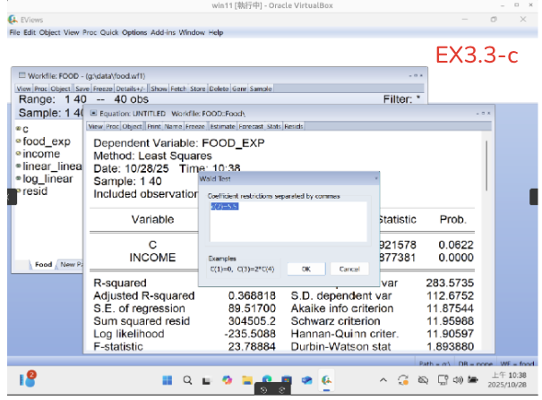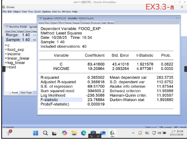 - 請參考p.63 的[EXAMPLE 2.4a Estimates for the Food Expenditure Function]