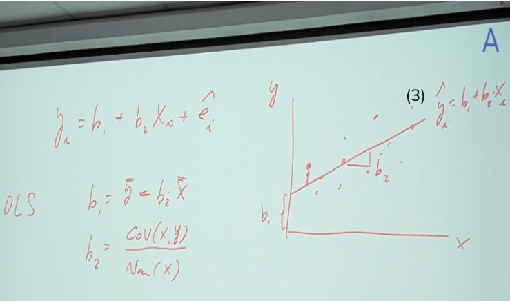 b2 = Σ(xi-xbar)(yi-ybar)/Σ(xi-xbar)2 = SSxy / SSxx; (而b1= ybar - b2xbar)