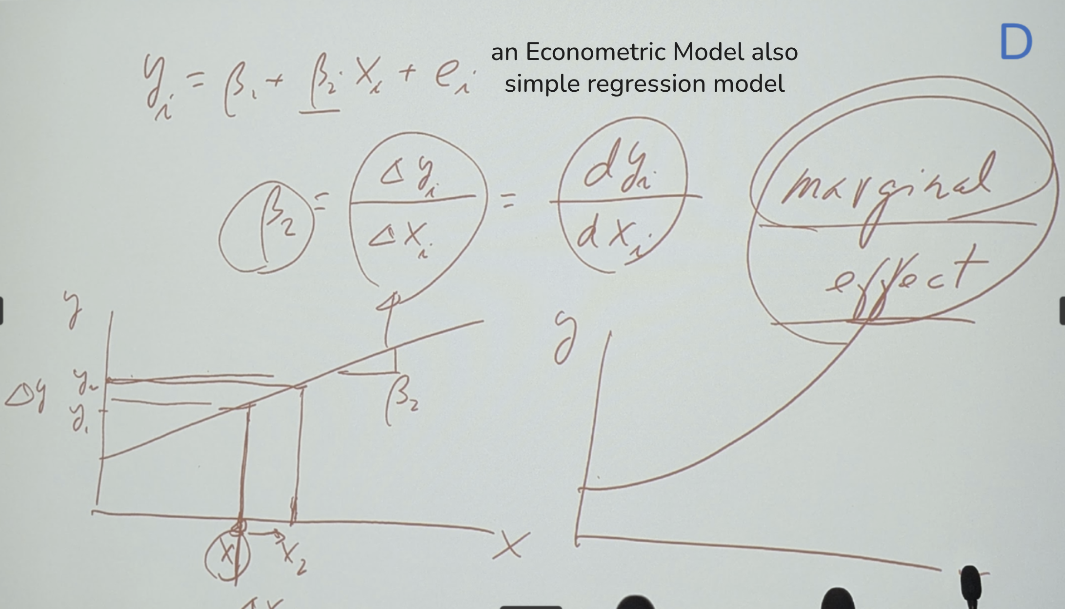 yi=β1+β2 +ei => dy/dx = beta2 = marginal effect