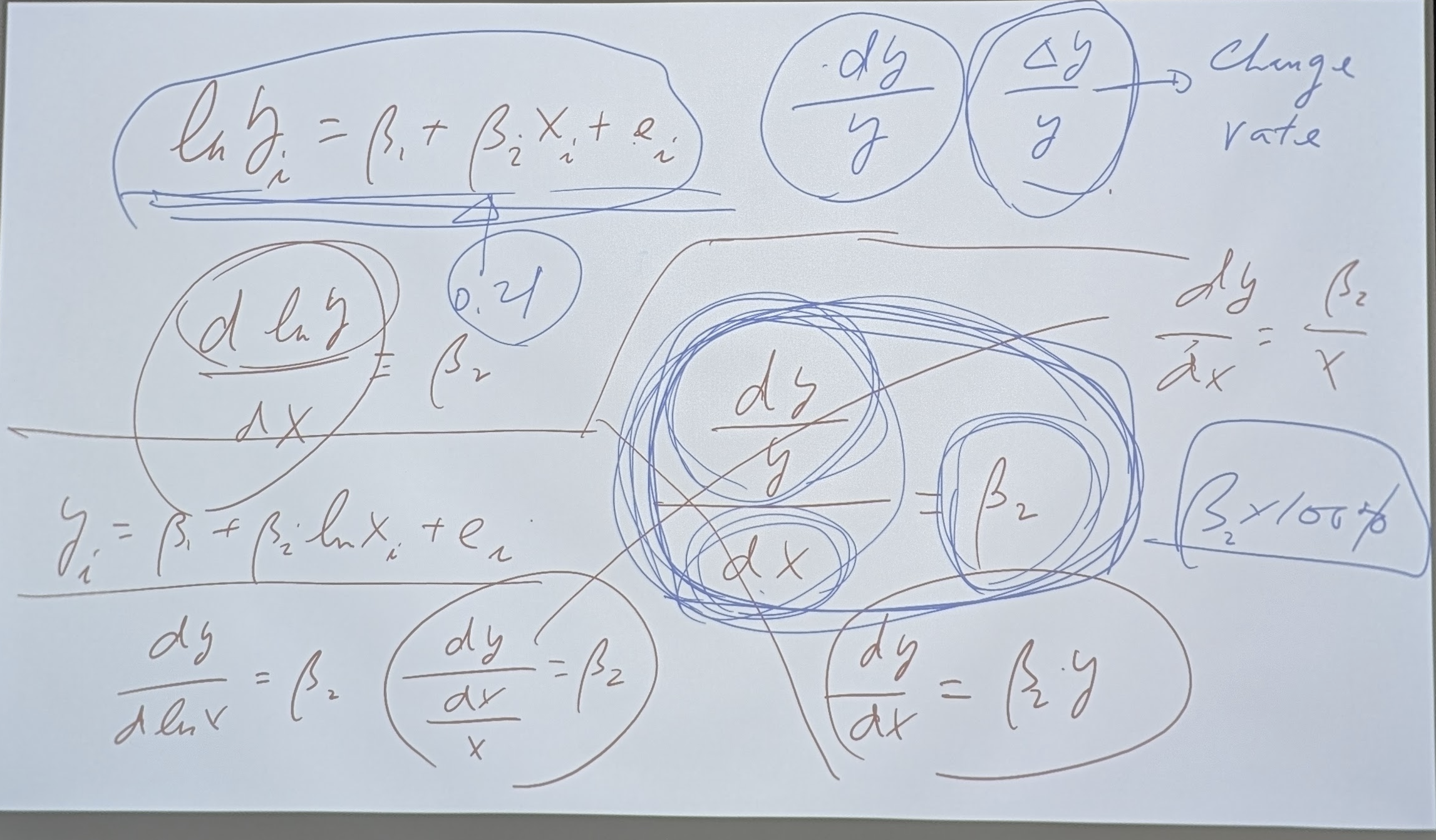 yi=β1+β2 x2+ei=> dy/dx = 2 beta2 x2 (如果x改為x2的話)