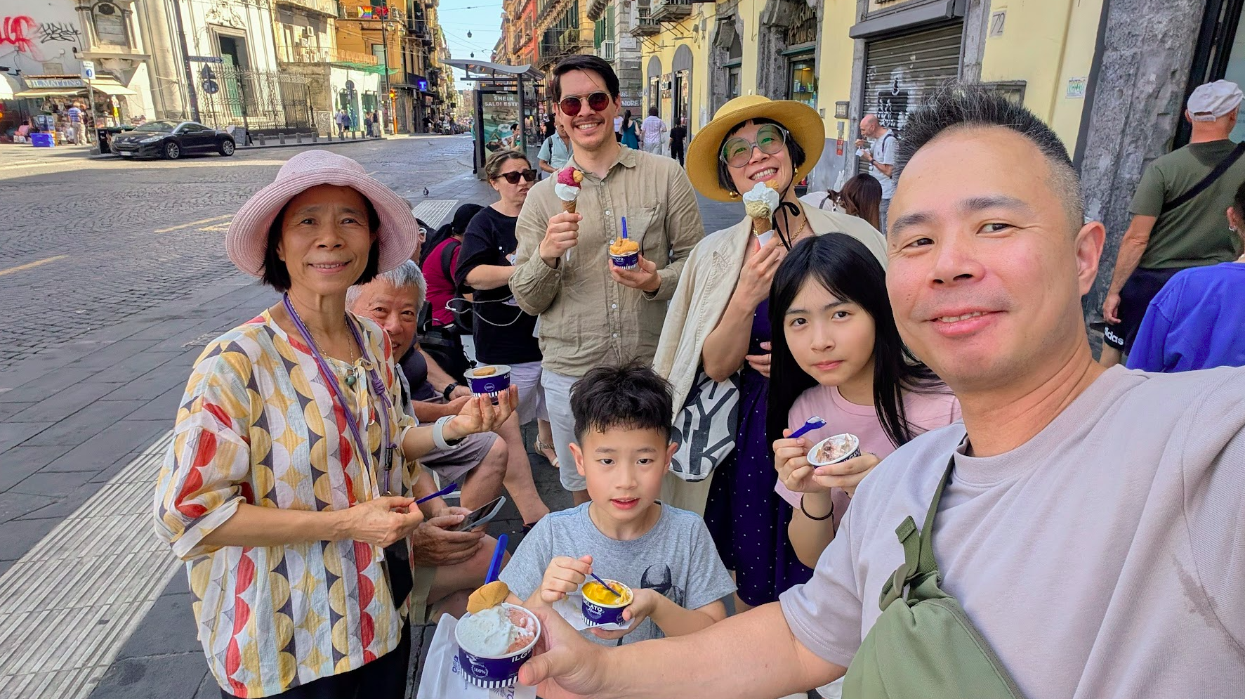 火車總站以Garibaldi加里波底為名。 預約的導遊,是位出生於蘇連多,滿口義大利英語的老先生,但腳力比任何人都好。 說龐貝城當時人口兩萬多,60%是富商、羅馬公民,40%希臘奴隸。龐貝盛產橄欖油、葡萄酒、魚露,商業鼎盛,城裡車水馬龍、旅館、妓院、澡堂、酒肆、食堂林立。街道是希臘傳統式設計:東西、南北棋盤結構,只容一馬車經過的道路同時也是排水道,路口都有泉水池,供大家飲用。全城有42個泉水池,各有其名,朋友約相見就說在那個泉水池。 總之內容太豐富了,兩個半小時的導覽只能像蜻蜓點水看個重點,不過小朋友都熱昏餓壞了,只能期待回去吹冷氣看Youtube了。 回到Garibaldi大家又累又熱,好在Felix選了一家非常棒、馬拉度那也來吃過的餐廳:Mimi,全員飽食一頓直呼不虛此行。 | 參見夏天裏過海洋 有關Ppnpei影片 |